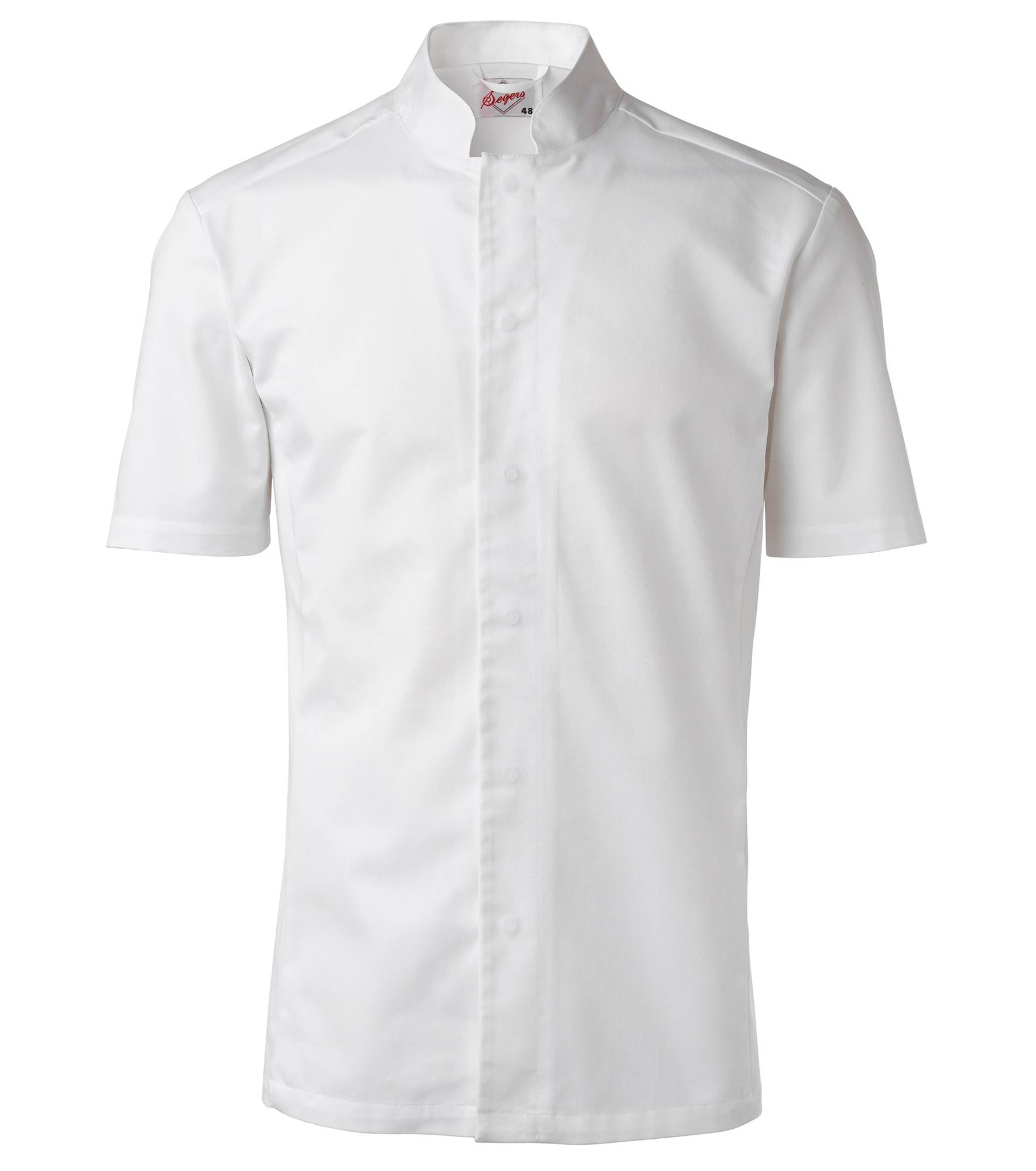 Tyylikäs ja mukava kokkipaita / kokkitakki, lyhythihainen. Slimfit. Piiloitettu painonappikiinnitys.Materiaali: polyesteri 65%, puuvillaa 35%. Pesu 85°.