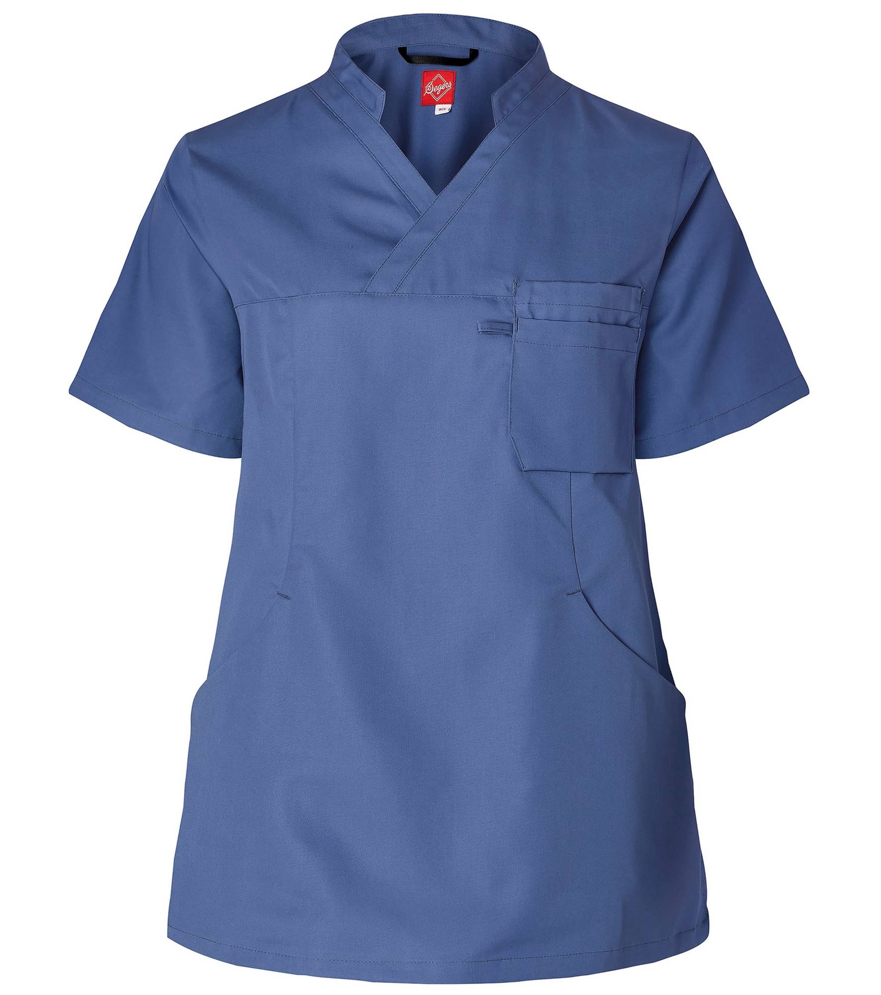 A-linjainen hoitotunika naisellisella muotoilulla. Ohut ja pehmeä materiaali, paljon taskuja löytyy. Pystykaulus, sivuhalkiot. Pesu 60°.