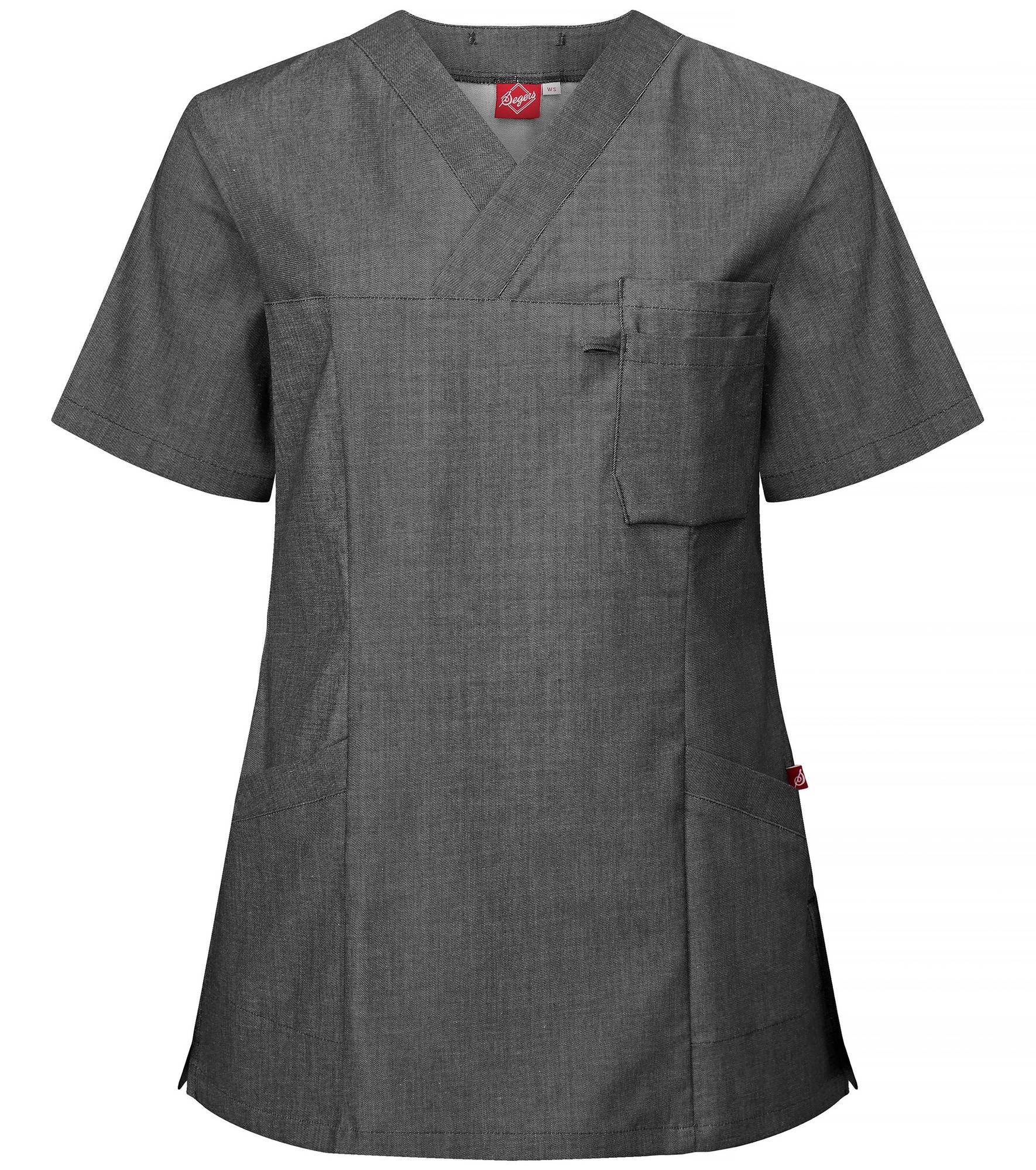 Tyylikäs tunika hoitoalan ammattilaisille denim look-a-like mallissa. Tunika on naisten mallinen hieman kapeampi vyötäröstä on mukava ja joustaa kivasti. Edessä rintatasku sekä syvät sivutaskut joista myös löytyy puhelintasku ja avainlenkki. Meleeratun kankaan ansiosta lika ei näy kankaassa niin helposti. V-kaula-aukko ja sivuhalkiot. MAteriaali 55% polyesteri, 43% puuvillaa ja 2% XLA-stretch. Pesu 85°.